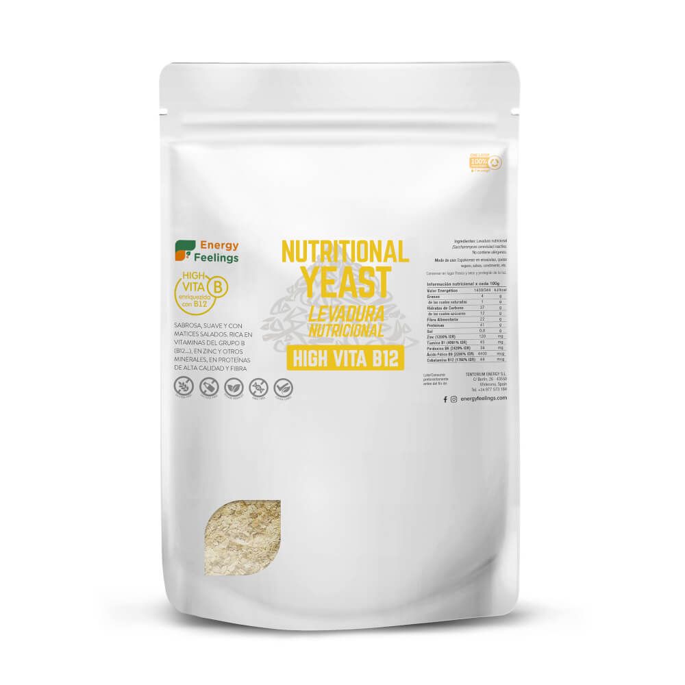 La Levadura Nutricional High Vita B12 de Energy Feelings es una fuente extraordinaria de proteínas vegetales, vitaminas del grupo B y minerales esenciales como el zinc. Elaborada a partir de cepas de Saccharomyces cerevisiae, cultivadas en melazas purificadas y secada cuidadosamente, esta levadura inactiva se presenta en forma de copos de color beige claro, con un suave sabor salado que recuerda al queso.
